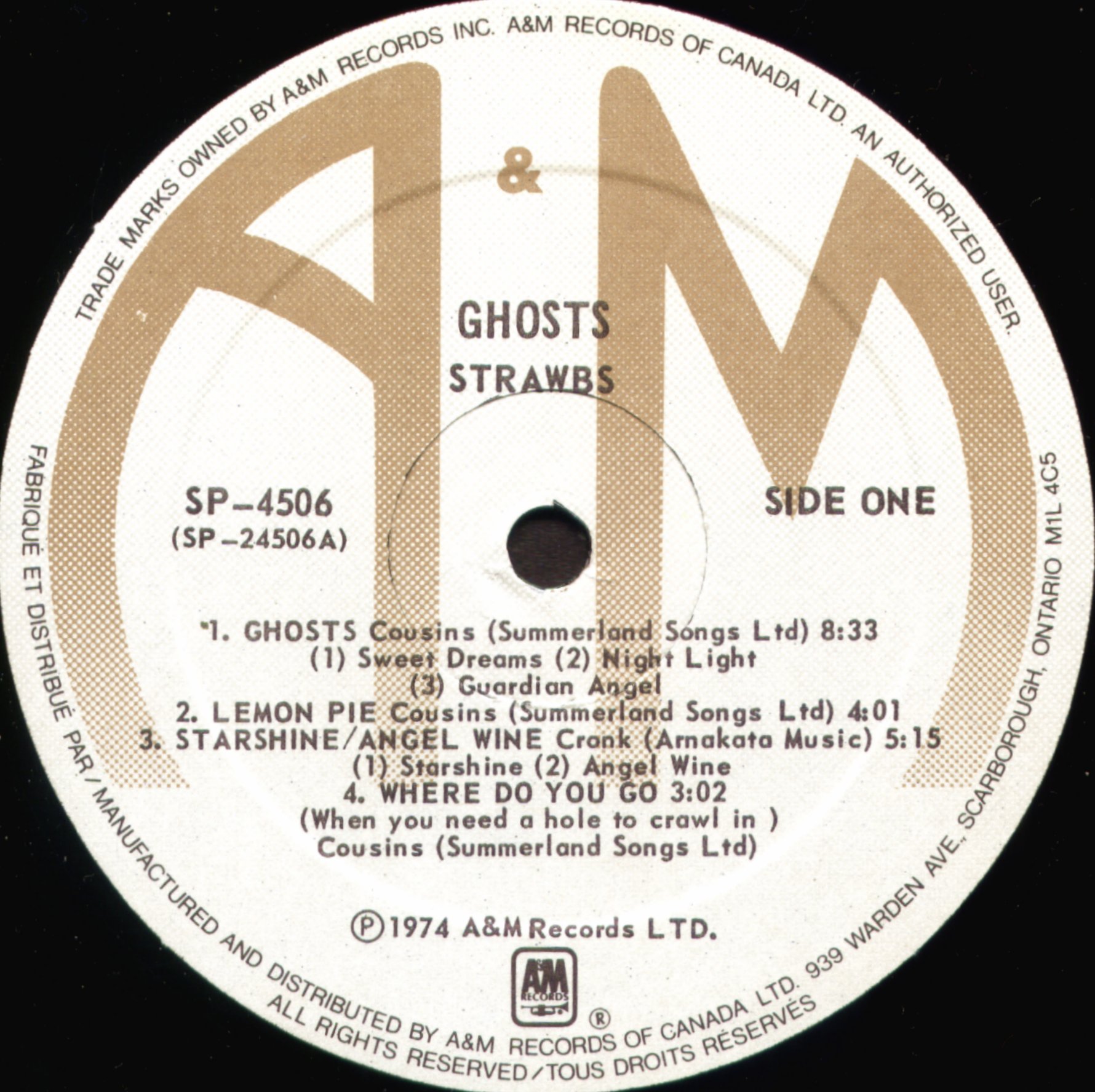 Vinyl album: SP 4506 (A&M, Can, 1974). Again, pretty much the same as the UK release, with Canadian address at bottom of the sleeve back. Bi-lingual rim wording.