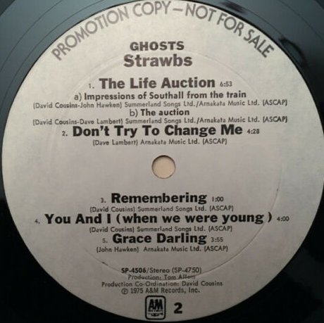 Vinyl album: SP 4506 (A&M, Can, 1974). Same as full release below, but with "D.J. COPY NOT FOR SALE" overprinted on silver label. Not known if there was a white label promo as standard with most other releases - both earlier (BATS) and later (Nomadness) - anyone got one?