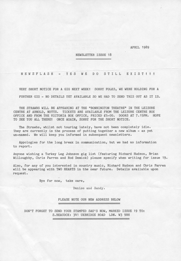 STRAWBS INFORMATION SERVICE NEWSLETTERS 1986 to 2000