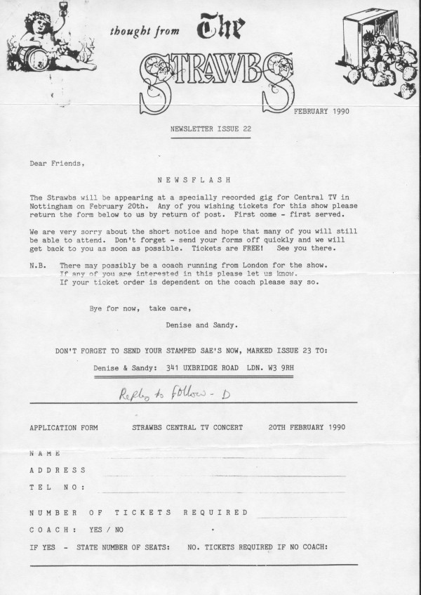 STRAWBS INFORMATION SERVICE NEWSLETTERS 1986 to 2000