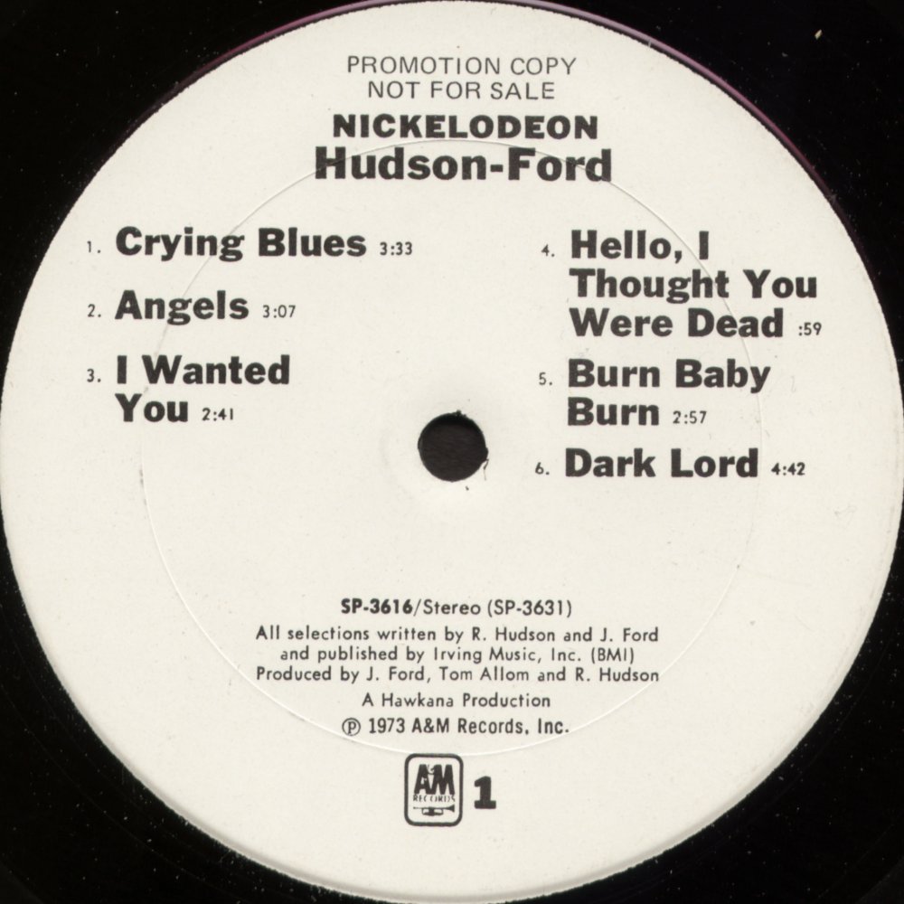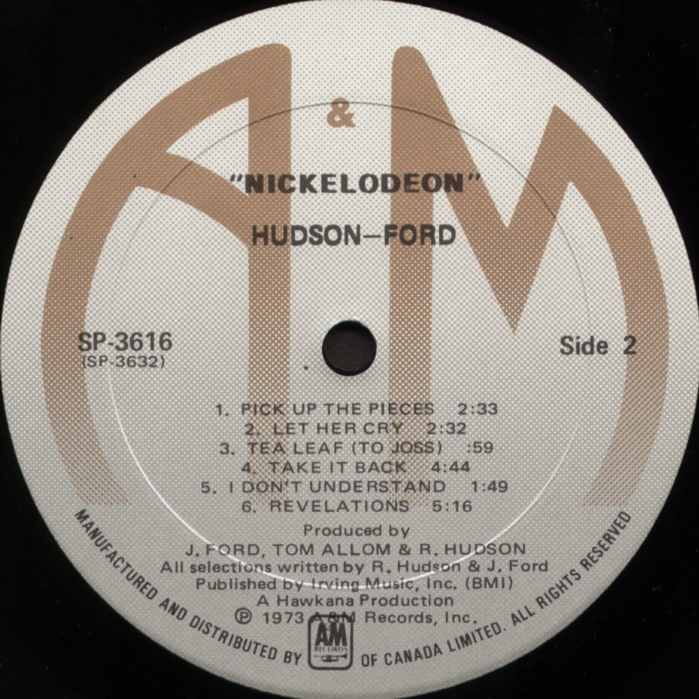 Vinyl album: SP 3616 (A&M, Canada). Spotted online, same as above, but promo wording on label. The picture of Hud and John has a photo credit bottom right to John Thomson, as on the full release.